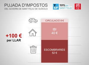 La pujada més significativa és la de l'impost de recollida d'escombraries que augmentarà un 25%, la qual cosa suposarà un increment mig de 50 euros per llar i any.